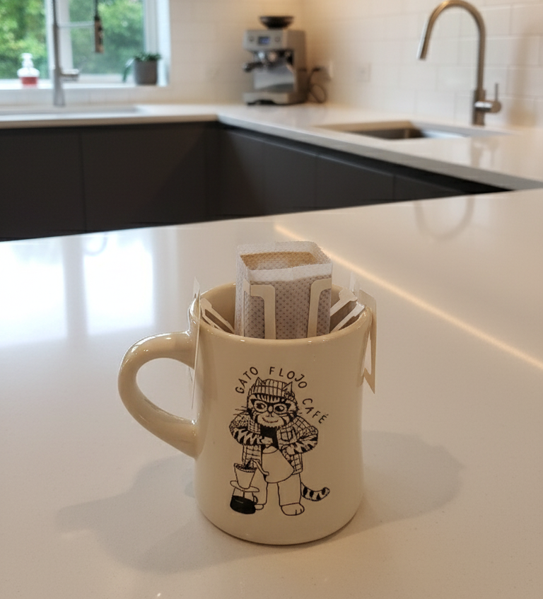 Caja de 10 filtros individuales con café molido para filtrar en taza. Origen: Honduras. Proceso: Lavado. Variedad: Ihcafe90 y Catuai. Altura 1600 msnm.